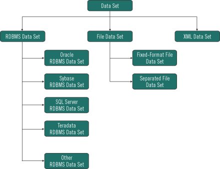 the beginning of the data set I am an object-oriented programmer at heart, so my inclination is to describe everything in terms of classes, objects, attributes and methods. In this month's column, I will provide some high-level descriptions of classes that can be used; in next month's column, I will provide more detail as to a sample code implementation, purely as a guideline for understanding approaches to enterprise information integration. There will be a class representing data instances and a hierarchy of classes representing collections of data instances. A data instance should be able to publish the names and data types of the elements composing the instance, as well as present the value of any of the data elements contained within. Should we desire to allow modification of the values, we might provide a method for updating a data element. The value of defining a standard data instance interface is that we can program our data set classes to always deliver records in the same class, which in turn simplifies the application. A data set should have high level summary information, such as the number of records in the set, the maximum and minimum data instance sizes, etc., as well as some kind of iterating pointer that can be reset to the first data instance in the set. One should be able to determine whether there are still more data instances in the set, and if so, be able to access the next data instance available. Lastly, each data set class should transparently deliver data instances in the standard object representation described in the previous paragraph. Conceptually this is great, until you recall the many different ways that we store or exchange data sets. By developing an application interface based on the functionality described, we can structure a class hierarchy that implements that interface and still remains transparent - this is the magic of the object-oriented approach. We might see data sets in RDBMSs, flat files or XML documents. Those flat files might be separated-element files, such as comma-separated files (CSVs), or they may be fixed format files; we may see a variety of database systems as well. Yet we can derive classes within a logical hierarchy that allows us to target each potential data source without requiring a significant code implementation, as is seen in Figure 1. Next month, we will look at these classes a little more carefully and begin to see how creating standardized class representations simplifies information exchange as well as application of business rules. |